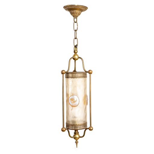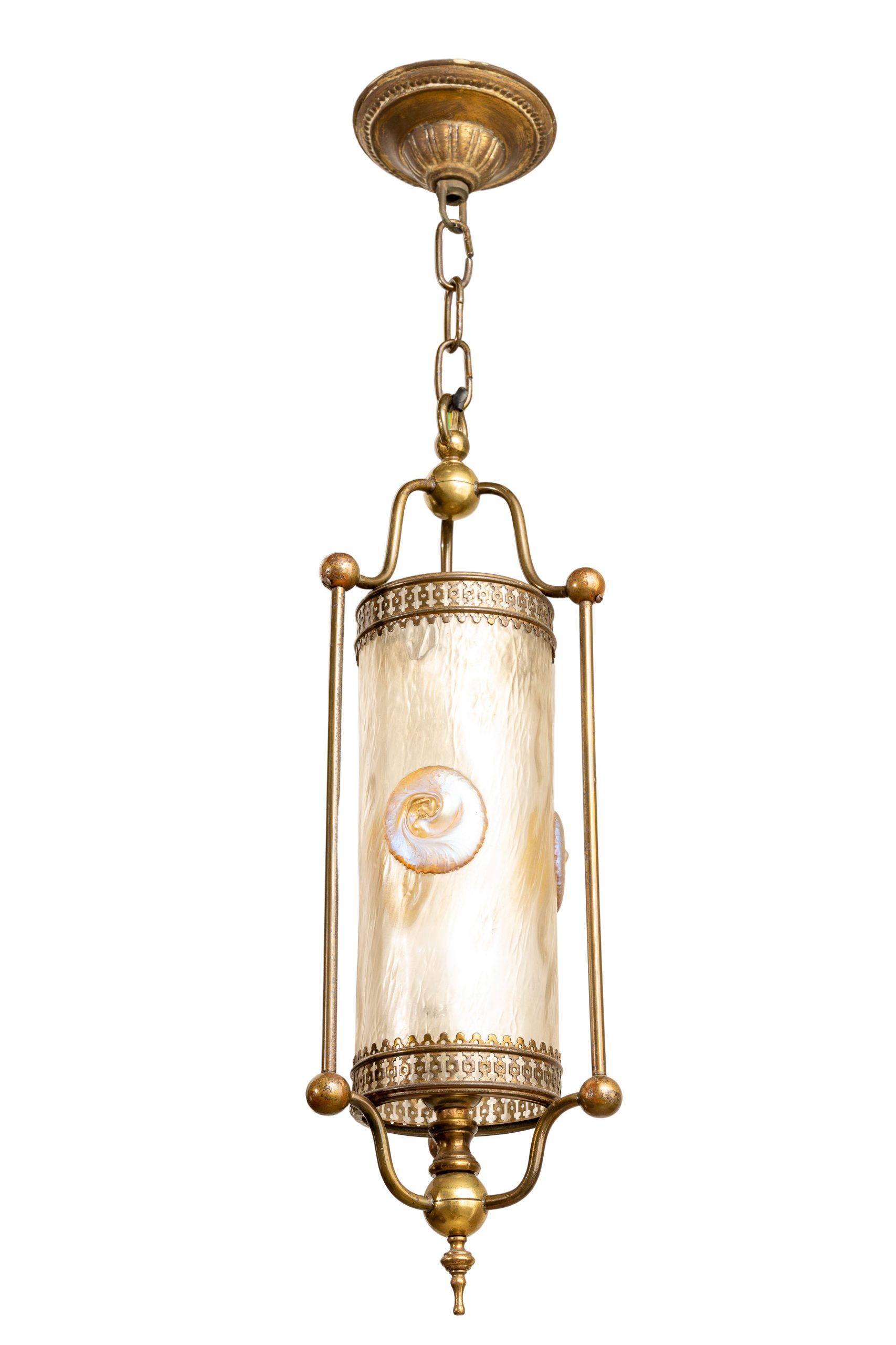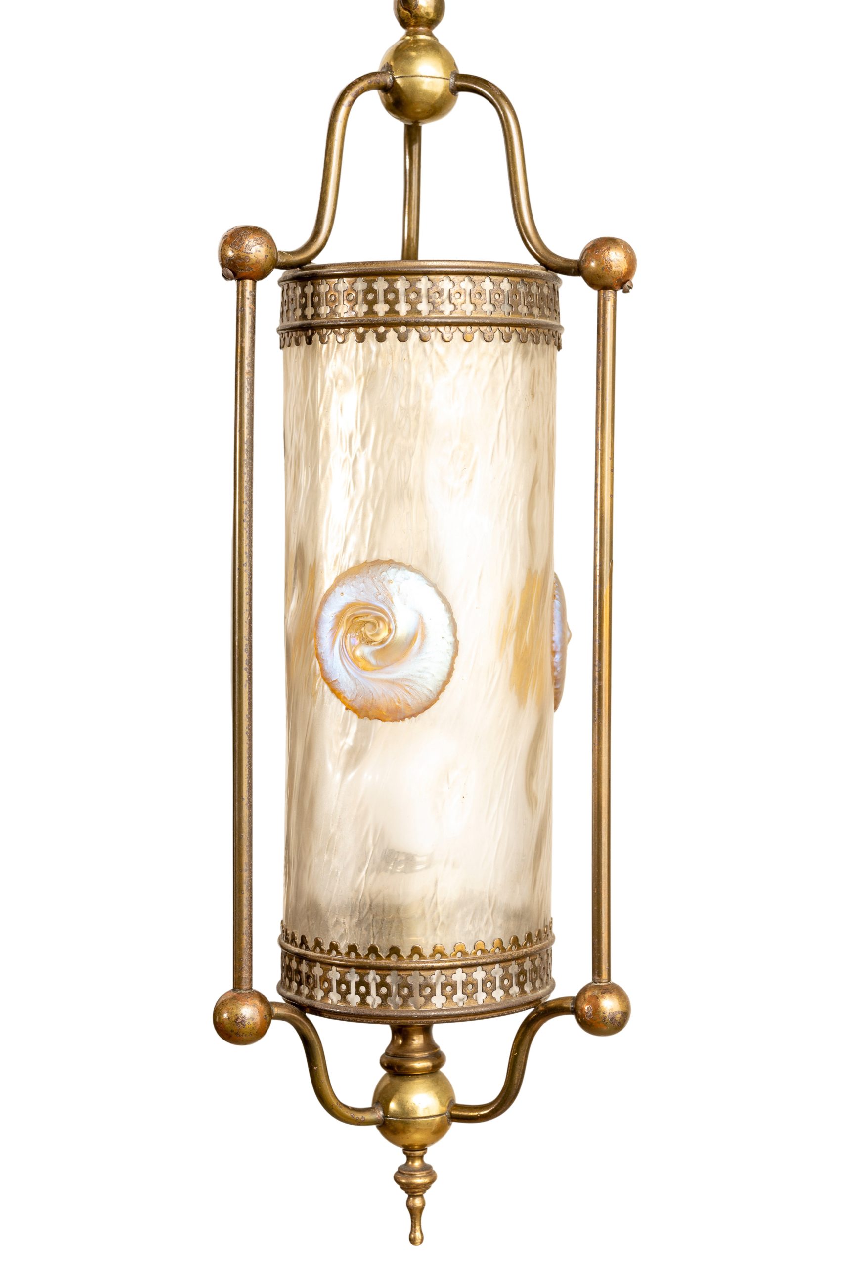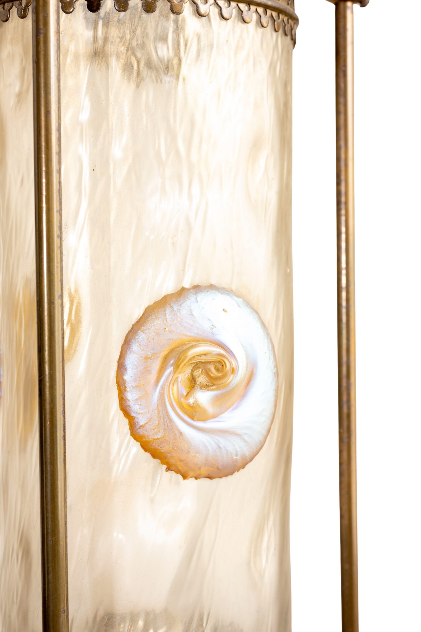 Hängelampe mit Glasschirm, Johann Loetz Witwe, Dekor Nautilus, um 1902