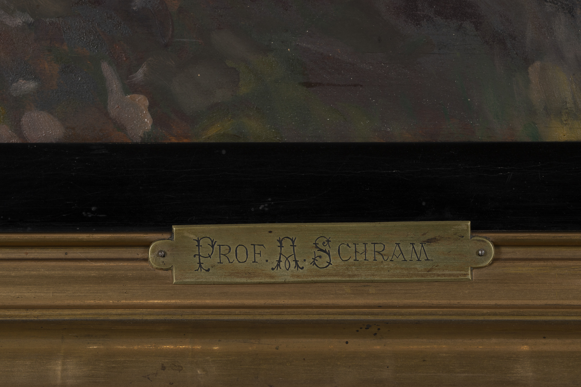 Nach einer vom Jugendstil geprägten Phase entwickelte er sich zu einem bedeutenden Vertreter des späten Neobarock in Österreich. Besonders bekannt sind seine allegorischen Friese im Wiener Parlament, sowie seine Deckengemälde im Festsaal der Neuen Hofburg. Schram war Mitglied des Wiener Künstlerhauses und starb 1919 in seiner Heimatstadt Wien.