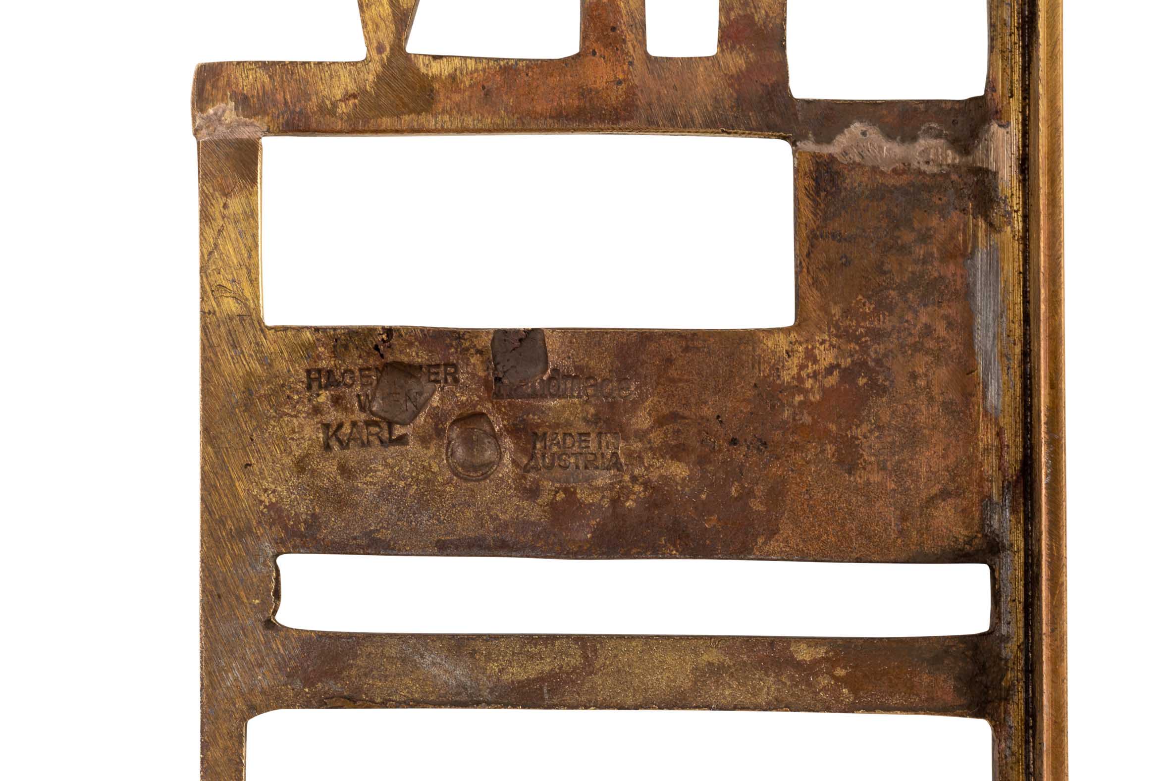Bald schon zeichnete sich bei Karl Hagenauer stilistisch eine Wende ab: die reine Ornamentik trat in den Hintergrund, reduzierte Formen wurden dominanter. Gerade im figuralen Segment entwickelte er nun einen eigenen, unverkennbaren Stil mit veränderten Proportionen und gelängten Gliedmaßen. Auch den bisher verwendeten Materialien wie Silber und Elfenbein gab er unedleren Metallen wie Messing, Alpaka und Kupfer den Vorzug. Konstant blieb aber die hohe kunsthandwerkliche Qualität der Objekte. Schöne Beispiele hierfür sind seine Entwürfe für Lampenfüße in Form von stark stilisierten Frauenakten oder die bekannte Tänzerfigurine der Josephine Baker aus den späten 1920er Jahren*. Auch seine exotischen Afrikanischen Tänzerinnen oder die drolligen Tierfiguren aus Holz vertrieb die Werkstätte Hagenauer mit Erfolg.