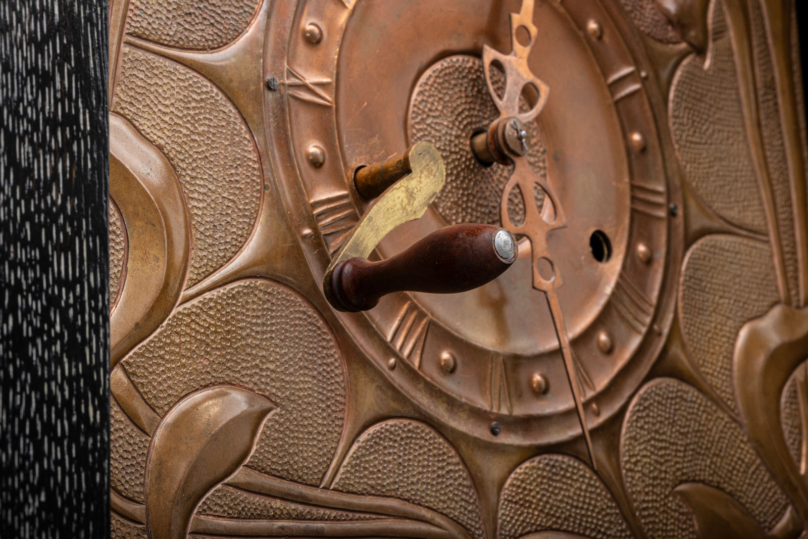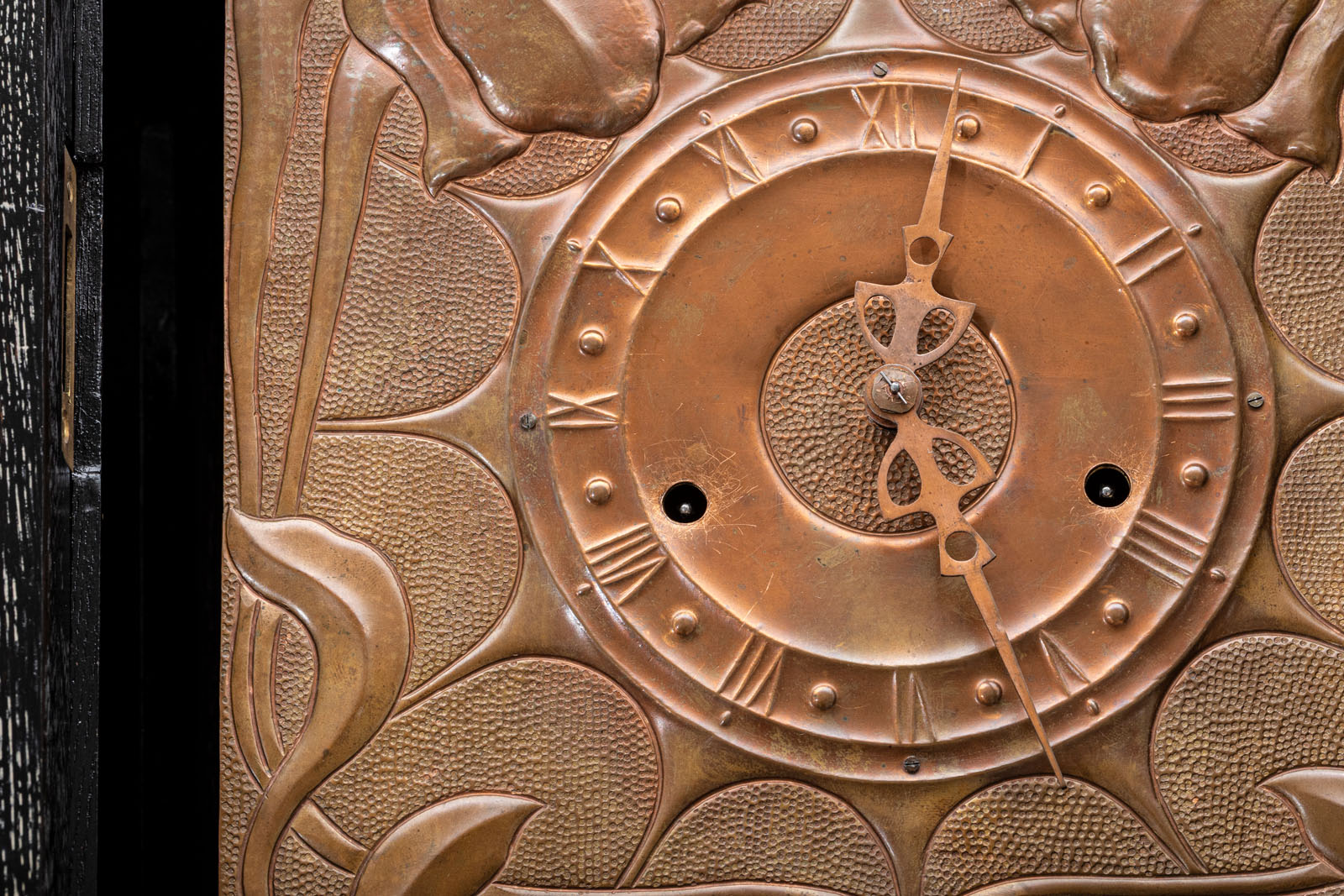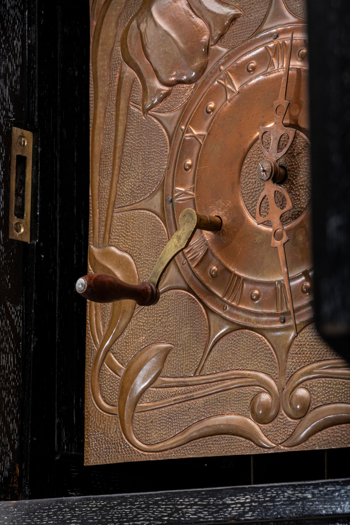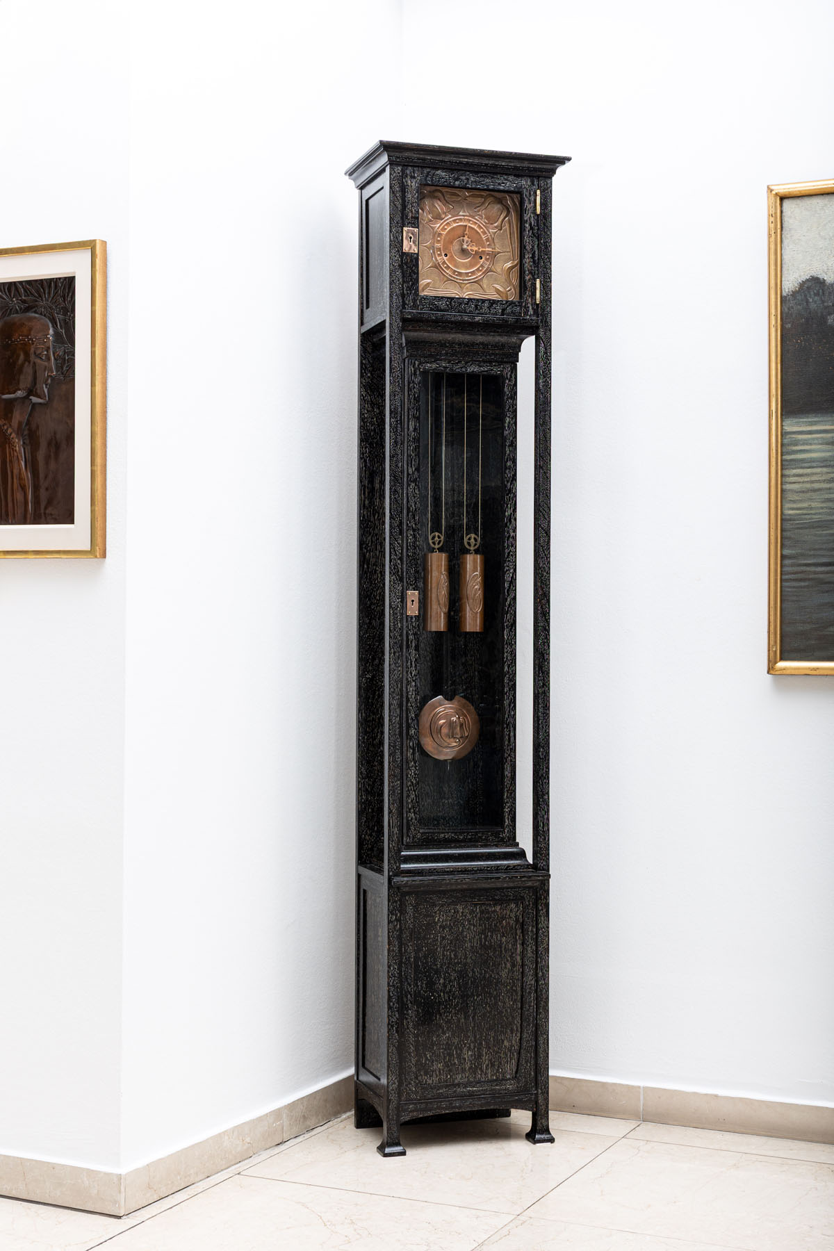 Standuhr, Ausführung des Gehäuses Michael Niedermoser zug., Kupfertreibarbeiten von Georg Klimt, ca. 1900