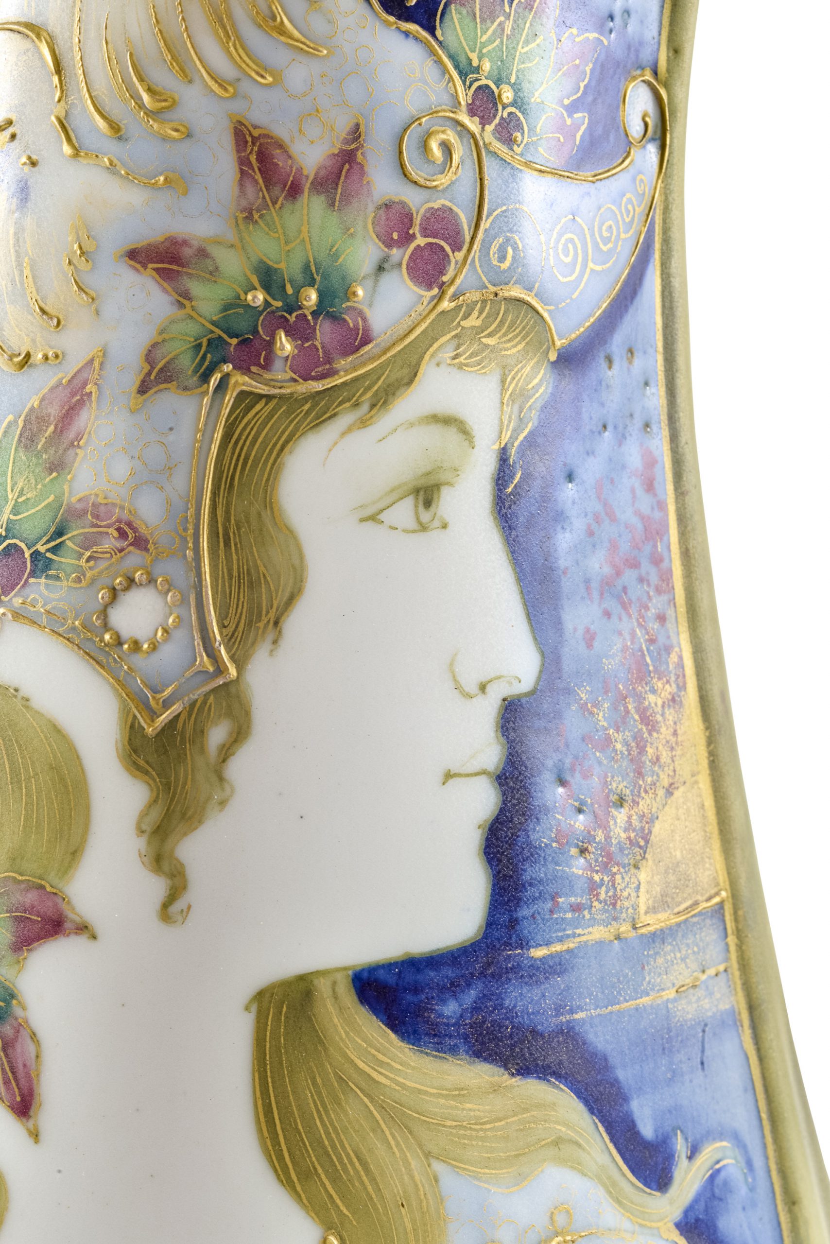 Eine Besonderheit der böhmischen Manufaktur Riessner, Stellmacher & Kessel stellen Gefäße aus Elfenbeinporzellan dar. Beliebt waren um die Jahrhundertwende die sogenannten Portaitvasen mit Darstellungen weiblicher Gesichter in unterschiedlichem Kontext. Mit ihrer Ornamentik waren sie dabei ganz dem Zeitgeschmack des französischen Art Nouveau verpflichtet.